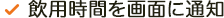 飲用時間になると「サプリを飲む時間です」という通知が画面に表示されます。