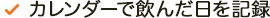 飲用中のサプリを全て飲んだ日には「花丸」、一部飲んだ日には「丸」がカレンダーに記録されます。