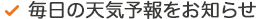 選択した地域の天気が毎日更新され、トップ画面に表示されます。