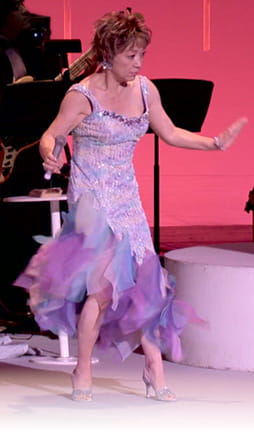 ステージで歌ったり踊ったりするのには、もちろん体力も必要です。50歳のときから水泳を始めて、目標をつくろうって思って、大会に出るようになったんです。コーチが「トレーニングをすれば70歳まではタイムは縮みます」って言ってくれるから、「じゃあ、もうちょっと頑張ってみようかな」と思えるんですよね。でも、ステージでドレスを着てハイヒールを履いて2時間、立ちっぱなしで歌って踊るのは、正直、年齢を重ねるごとにひざがしんどくなってくるわけです。