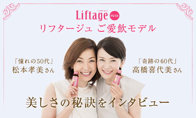 |コラーゲン×プロテオグリカン配合のLiftage(リフタージュ)PG-EX。大人世代のたるまない毎日を支える、贅沢な年齢美容ドリンクです。