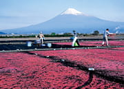 資源保護のため、漁期は3月からの春漁と、10月からの秋漁の年2回。由比港に水揚げされた「桜えび」は、鮮度が落ちないうちに素干しや釜揚げに加工されます。この時期、富士川の河川敷などで行われる天日干しは、桜色の絨毯を敷いたように美しく、季節の風物詩です。