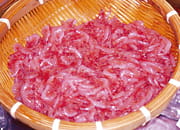 深海に生息する体長4~5cmの「桜えび」。水揚げされると、透明な身がすぐに美しい桜色になることからその名がつきました。世界でも稀少な生物で、国内では主に駿河湾だけで獲れる貴重品です。
