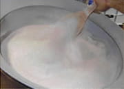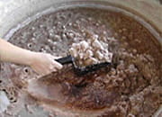 1984年、「県民の浜」造成工事中に発見された古墳時代の製塩土器が、蒲刈町の藻塩研究のきっかけになり「藻塩の会」が発足しました。その後、10年余りの試行錯誤を繰り返し、海水にひたしたホンダワラ(海藻)を乾かし、それを焼いた灰をさらに海水でこし、かん水(濃い塩水)をつくり土器で煮詰めて塩をとるという製塩方法を確立。古代人の知恵から生まれた天然塩を再現しました。ほとんどの作業が手作業で行われるため、1日にできる量はわずかに200kgとのこと。