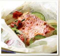 また、お刺身や昆布じめ、味噌漬けや西京漬け、蒸し物、揚げ物など、多彩に調理できるところも大きな魅力。栄養的にも高タンパクで低カロリー、頭や皮にはゼラチン質を多く含むヘルシーな食材です。淡泊で香りの良い身は、洋風のムニエルやオーブンでグリルしても大変おいしく、キリッとやした白ワインによく合います。