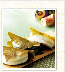 ほど良い大きさで殺菌作用もある柏の葉は、食器や蒸す時の器として重宝されました。宮中ではその使い手である料理人は「かしわで(膳夫)」と呼ばれ、また、神社で両手を打つ「柏手」は、清めた手のひらを柏の葉に見立てたともいわれます。柏餅の中身も、両手で包み込むように、あんを生地で挟むのが本来の作り方です。その折り目には、子どもの健康と成長を祈る母親の気持ちが込められています。