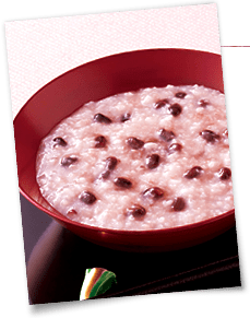 日本では昔から赤い色には邪気を払うちからが あるとされ、 赤い小豆は宮中や年中行事に よく用いられてきました。 1月15日の小正月には、 小豆を炊いた望粥(もちがゆ)(小豆粥)を食べて、 一年の健康を祈りましたが、実際、 小豆には豊富な栄養分が含まれているため、 これは実に理にかなった食べ方でした。 皆さまも小豆を食べて、一年の英気を養いましょう。