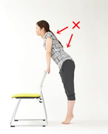 両腕は平行を保ったまま、お尻の骨が椅子の座面に向かうように、