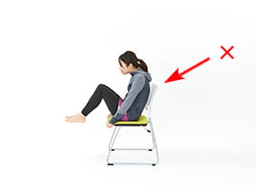 椅子に浅く座り、胸の前で腕を組む。左足を床から浮かし、右足に体重を乗せてゆっくり椅子から立ち上がる。しっかり片足で踏ん張って立ち上がれるかをチェックしよう。反対側も行う。