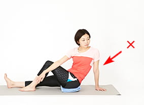 お尻が浮かないように注意し、上体が前に倒れないようにしよう。