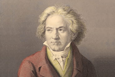 「第九」の正式名称はベートーヴェンの「交響曲第9番ニ短調(合唱付き)」。音楽室の肖像画でお馴染みの“楽聖”ベートーヴェンが完成させた9番目にして最後の交響曲です。第4楽章には、ドイツの詩人シラーの頌歌を歌詞とする合唱が盛り込まれ、「歓喜の歌」が高らかに歌いあげられます。