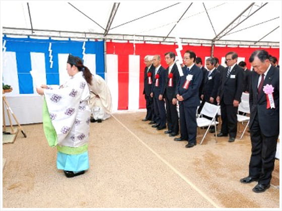 2014年5月8日(木)、新たな研究開発拠点「サントリー ワールド リサーチセンター」の起工式を、京都府精華町「けいはんな学研都市」内の建設予定地にて執り行い、工事の無事安全を祈願しました。また、起工式の後には直会(なおらい)を実施しました。当日は、京都府をはじめとする地元自治体の皆さま、研究所の建築・設計に協力いただいている関係者の皆さまなど、60名以上のご来賓の方々にも出席いただきました。