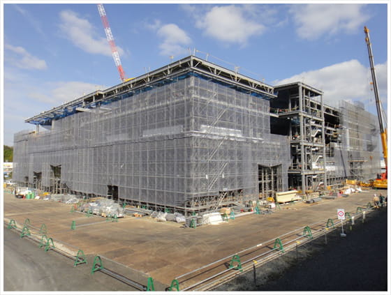 新研究拠点となる「サントリー ワールド リサーチセンター」は、2014年5月に着工してから4階建ての鉄骨が組みあがり、現在は、外壁や屋根、床を作っている段階です。