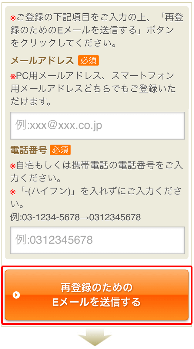 A.「パスワードの再登録依頼」ページに、ご登録いただいておりますメールアドレスと電話番号をご入力の上、「再登録のためのEメールを送信する」ボタンをクリックしてください。